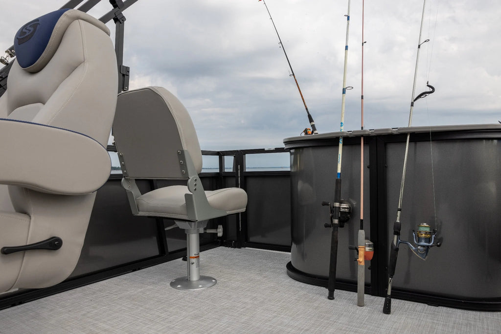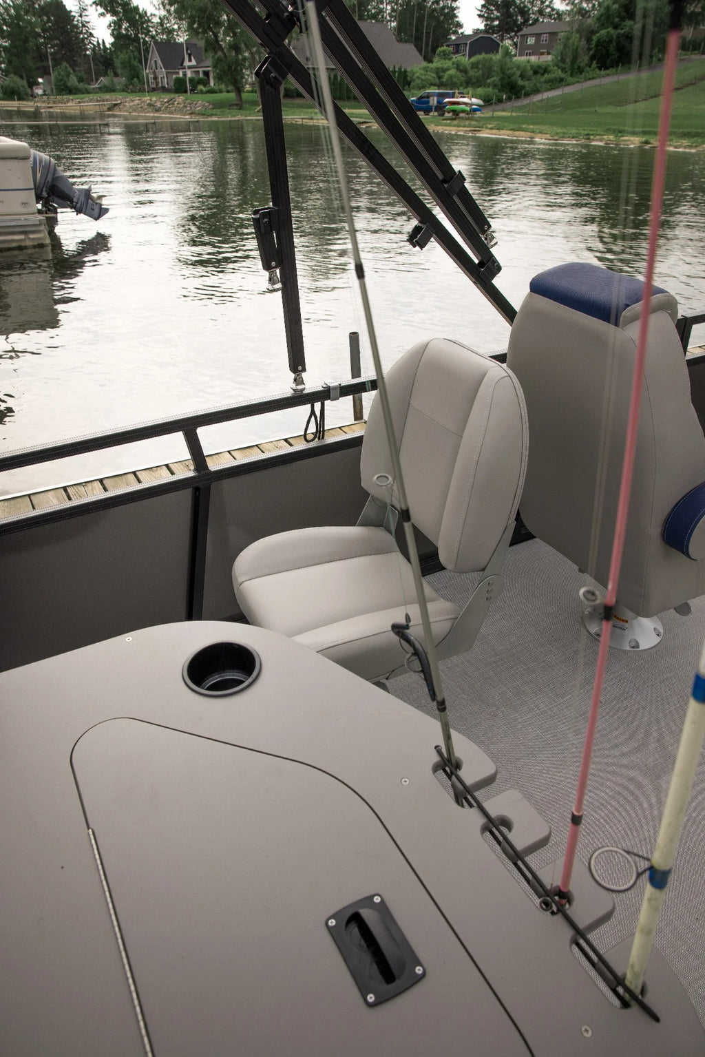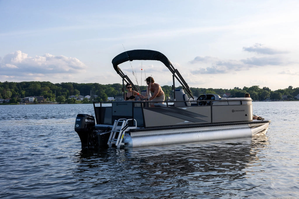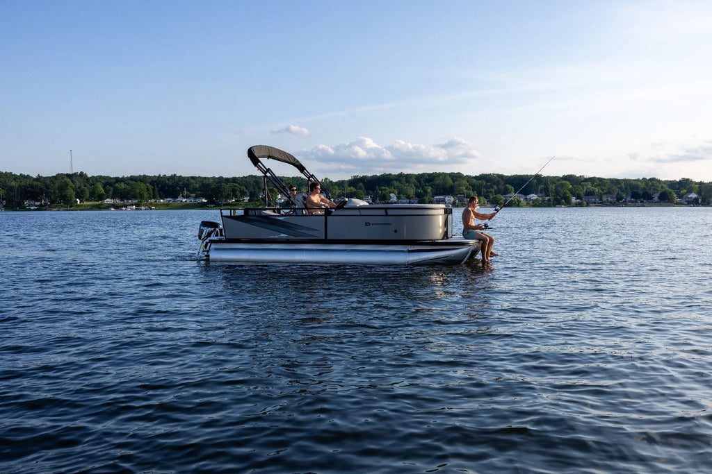 The Dockside 20DF is the fishing-focused 20-foot pontoon with an open bow, smart deck flow, and angler-friendly details.