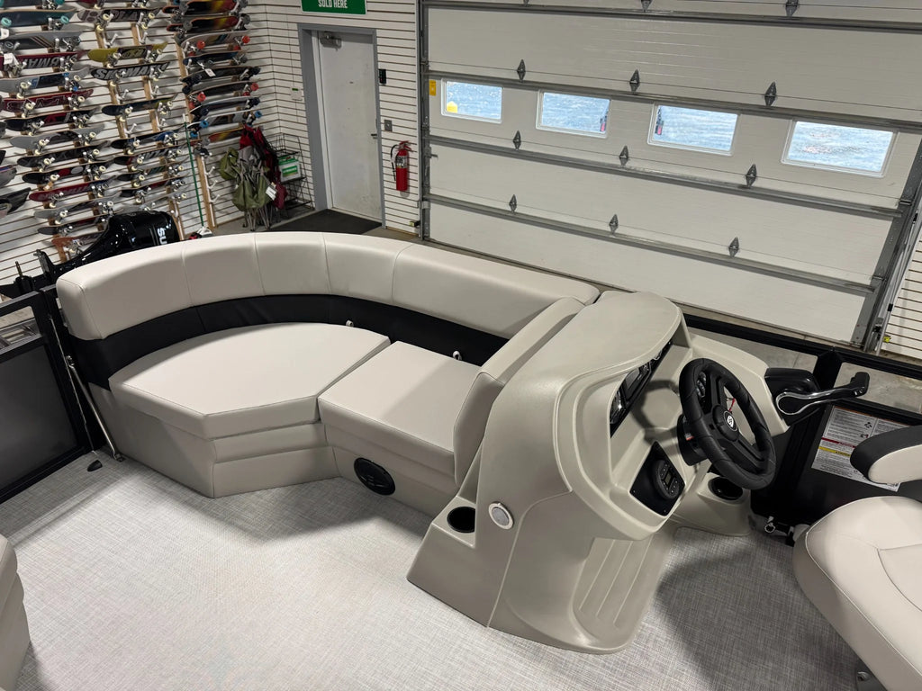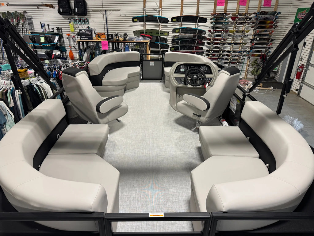 Offered exclusively by Wakeboss.com, this 20'10" pontoon delivers quiet performance, modern styling, and all-day comfort. Featuring a factory-installed Lowrance Hook Graph built into the dash, the Dockside 20DQ provides reliable navigation and depth monitoring alongside Suzuki’s fuel-efficient 50 HP four-stroke engine.