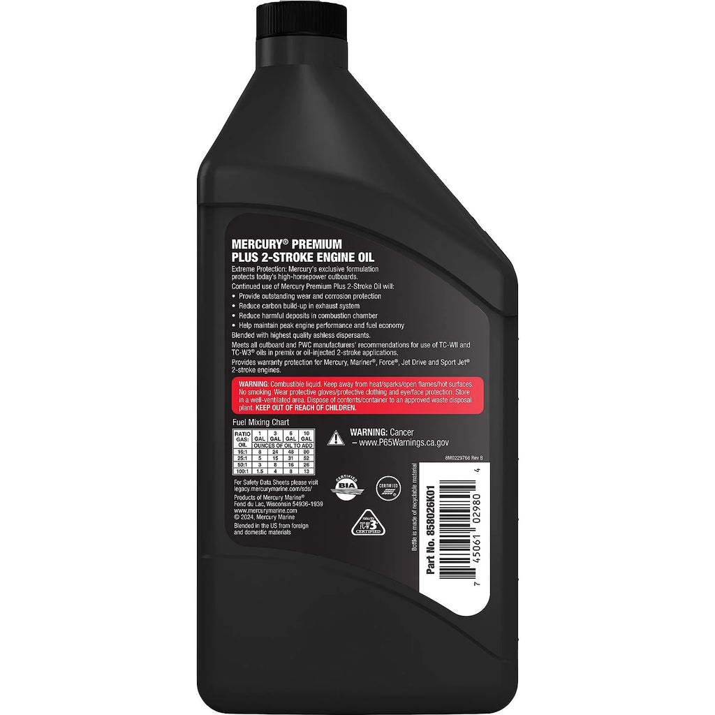- 1 × Mercury Premium Plus TC-W3 2-Stroke Marine Engine Oil, 1-Quart (858026K01)