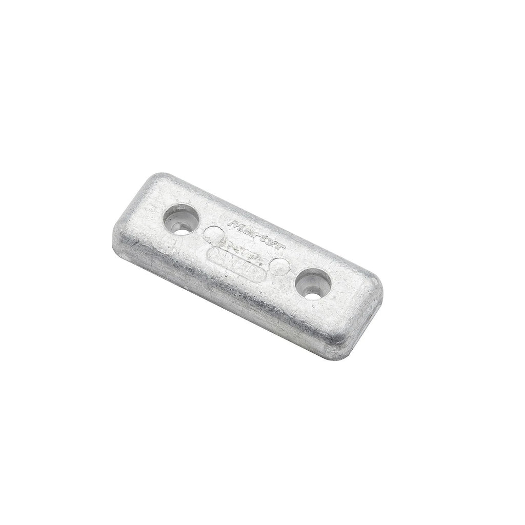 Install the anode securely to the designated mounting location on the outboard or jet drive. Ensure proper metal-to-metal contact for effective electrical conductivity. Replace the anode when approximately 50% of its material has worn away to maintain full corrosion protection.