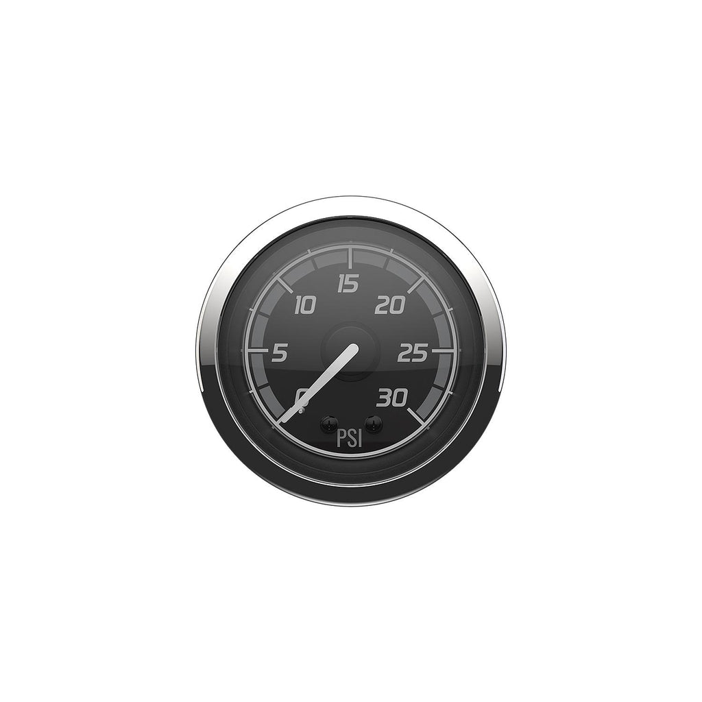 CLASSIC BLACK FACE WITH CHROME BEZEL – Easy-to-read design with timeless styling to enhance any dash panel.