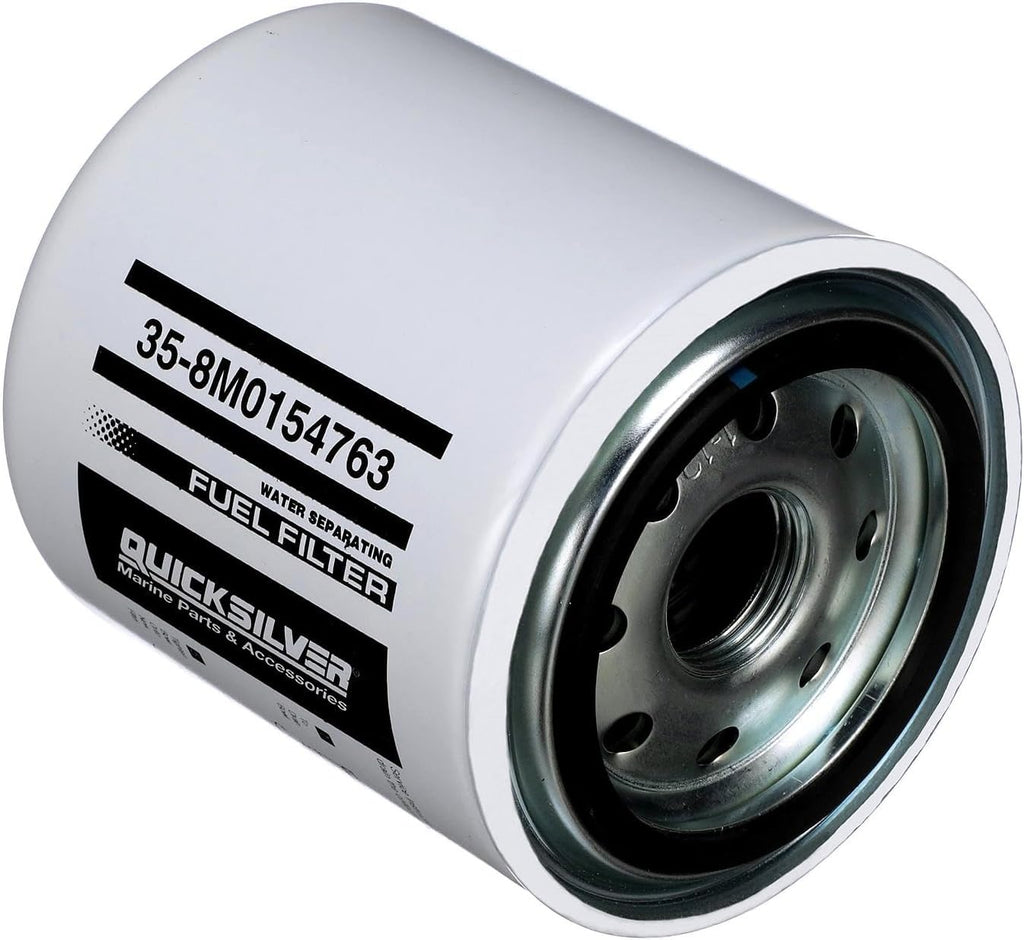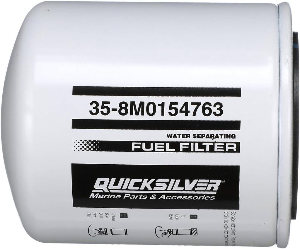 Quicksilver 8M0154763 is a water separating fuel filter for select Johnson and Evinrude 250hp and 300hp outboards. Designed to help keep harmful debris and water out of the fuel system, this 10-micron filter supports clean fuel delivery and routine seasonal maintenance.