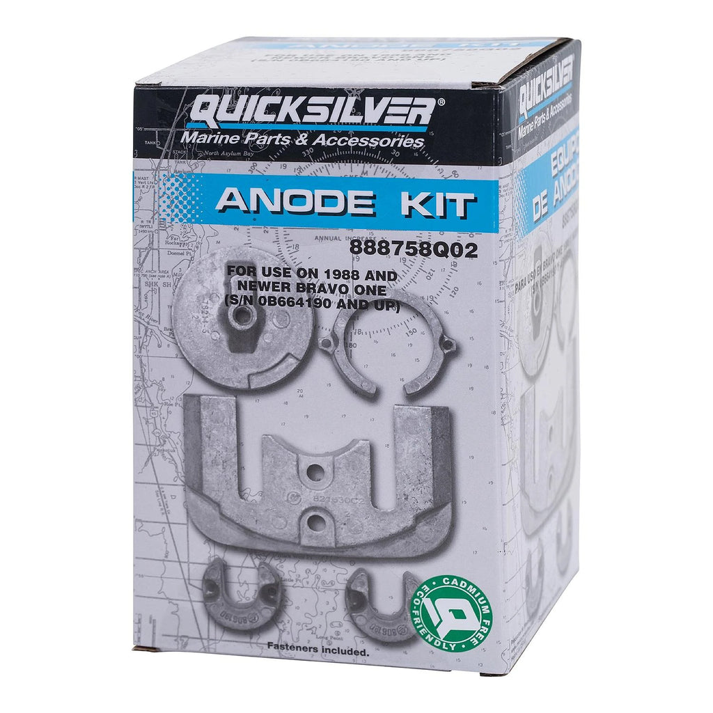 Protect your MerCruiser Bravo One sterndrive from corrosion with the Quicksilver 888758Q02 Aluminum Anode Kit — engineered for lasting protection and OEM-quality performance in all water conditions.